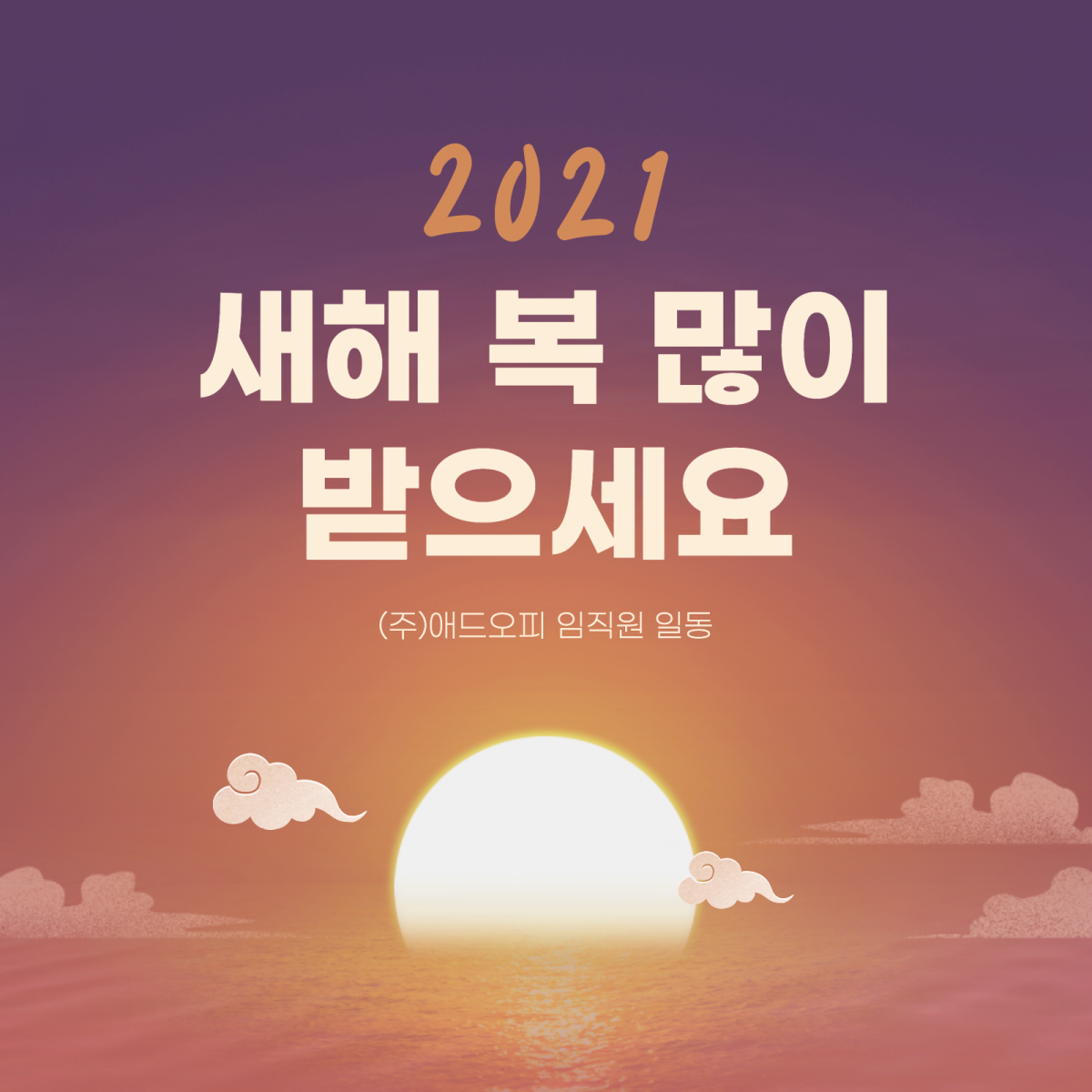 [애드오피 이야기] 2021년 새해 복 많이 받으세요! 안녕하세요. 애드오피입니다! 벌써 2021년 설 명절이 다가왔네요. 즐거운 설 명절 보내시고, 새해 복 많이 받으세요! ?♂️??♀️ 애드오피에 보내주신 관심과 사랑에 감사드리며, 2021년 신축년에도 변함없는 인연으로 이어가길 소망합니다. 희망과 행복으로 가득한 2021년이 되시길 기원하며, 저희도 늘 한결같은 마음으로 최선을 다하겠습니다. [애드오피 이야기] 2020년 Review 경영설명회 View Post [애드오피 뉴스] 애드오피 패밀리 (주)버스터의 수상 소식 전해드립니다. View Post