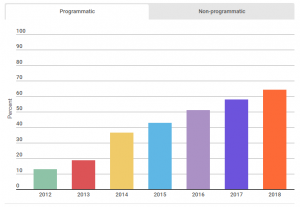 글로벌 시장에서도 미디어 에이전시 Zenith의 보고서에 따르면 2017년은 프로그래매틱 방식이 디지털 디스플레이 광고의 대부분을 차지하는 첫해가 될 것이라고 전망했습니다.